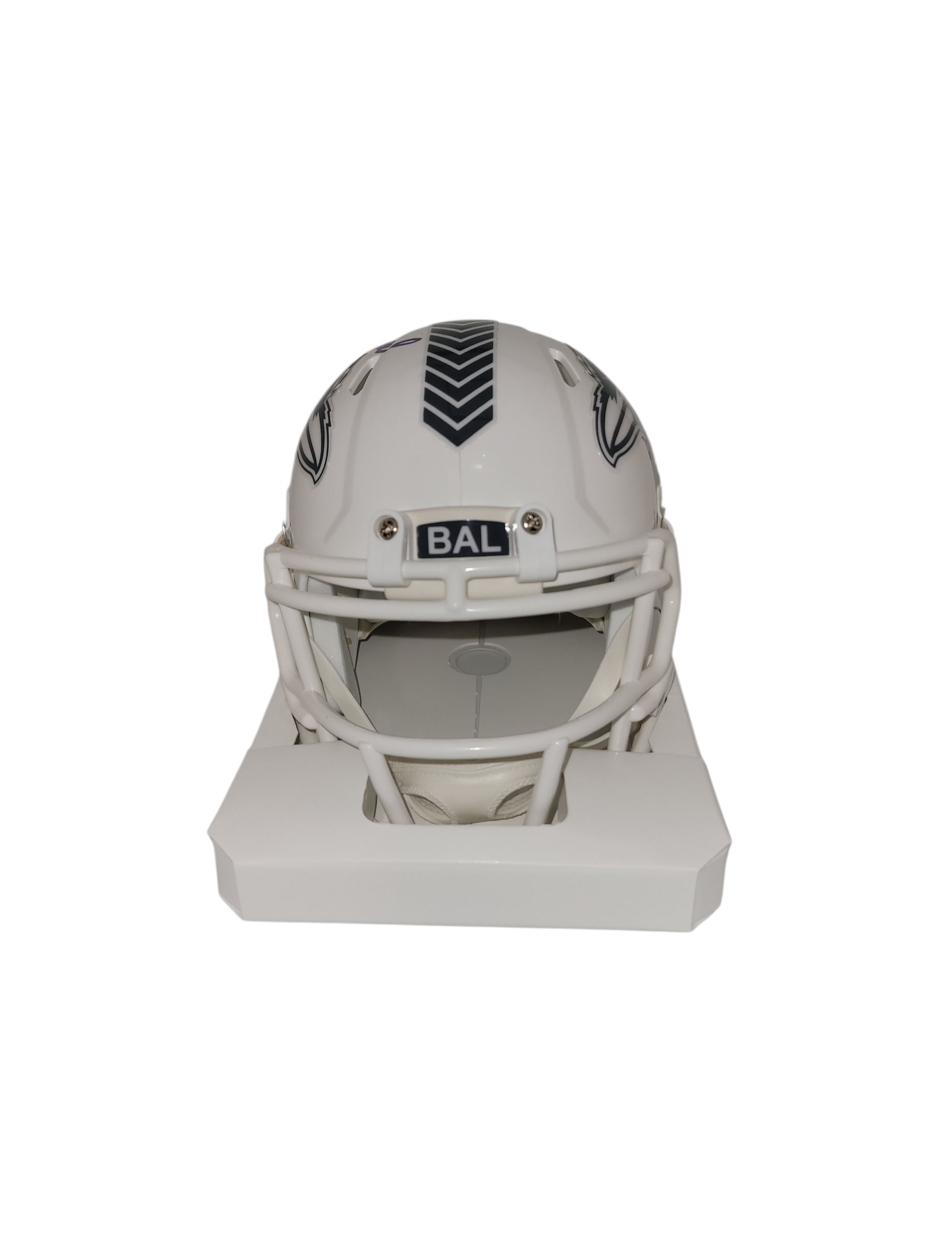 This Ed Reed Signed Ravens Salute To Service Speed Mini Helmet is a must-have for any football fan. With Beckett Authentication, you can verify the authenticity of this signature at any time by going to the Beckett website and entering the ID # displayed on sticker on the back of the helmet (shown in the pictures as well). This mini helmet is perfect for any collector or fan looking to add to their collection. Secure your piece of NFL history by collecting this beautiful Salute to Service mini helmet autographed by one of the greatest football players of all time, Ed Reed!